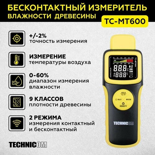 Измеритель влажности древесины бесконтактный TECHNICOM TC-MT600, 1х9В, влажность 0-60%, ЖК дисплей