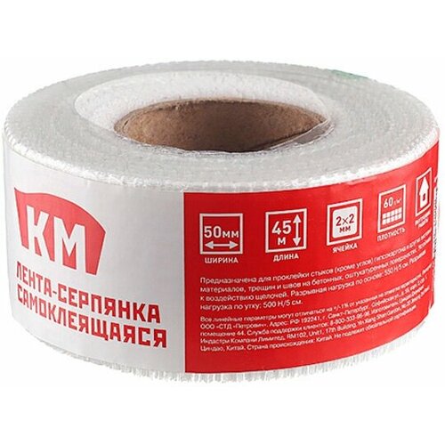 Лента стеклотканевая КМ Профи серпянка самоклеящаяся 50 мм 45 м
