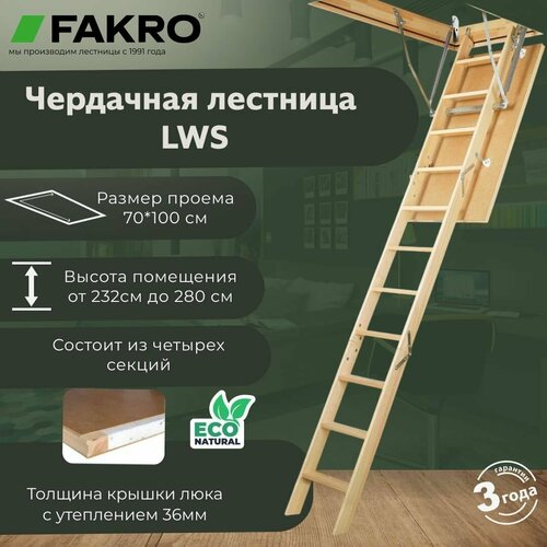 Лестница FAKRO LWS 70*100*280 (утепленная, крышка 36 мм)