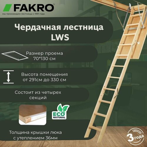 Лестница FAKRO LWS 70*130*330 (утепленная, крышка 36 мм)