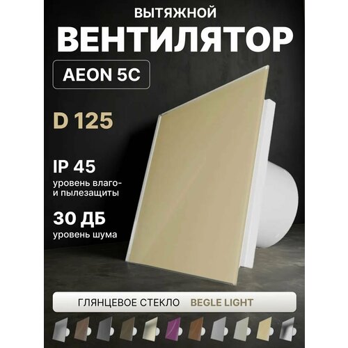 Вентилятор вытяжной AEON 5C D125 Beige Light с обратным клапаном, панель матовое стекло DICITI