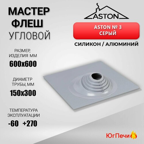 Кровельный проход угловой Мастер-флеш ASTON №3 (д.150-300мм, 600х600мм) силикон, Серый