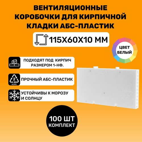 Вентиляционные коробочки для кирпичной кладки 115х60х10 (Белый АБС пластик) 100 штук