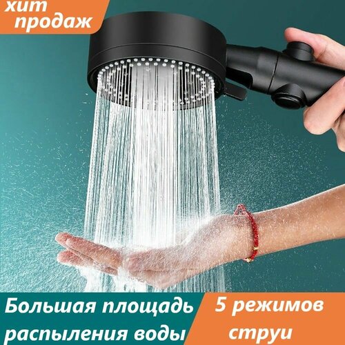 Лейка для душа с фильтром Shower Head Big Black, большая, черная, 5 режимов