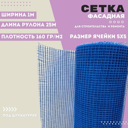 Сетка фасадная - стеклотканевая 5х5/ 25м/ синяя/ 160 г. м2