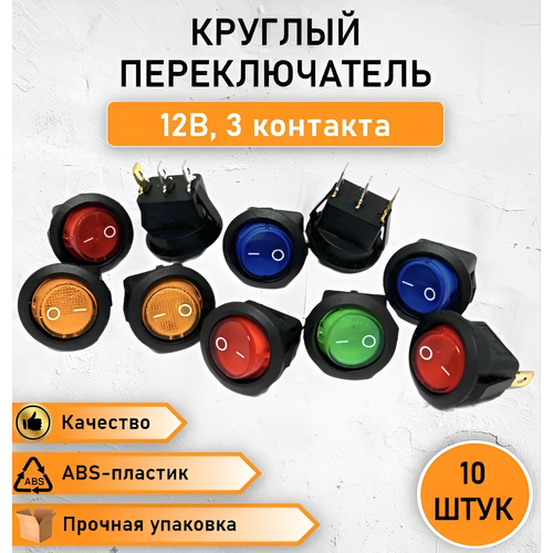 10 ШТ. Переключатель круглый рокерный, кнопка - выключатель ON-OFF с подсветкой разного цвета, 20А, max. 12В трехконтактный, 2 позиции, 18мм - диаметр, 25.3 - высота KCD1-8