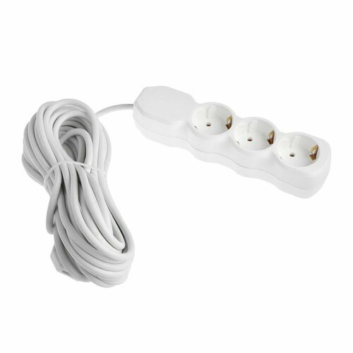 Удлинитель Luazon Lighting ECO 3 розетки, 10 м, 10 А, 2200 Вт, ПВС 3х0.75 мм2, с з/к, белый