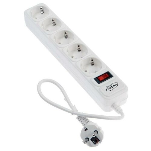 Сетевой фильтр Luazon Lighting, 5 розеток, 0.5 м, 2200 Вт, 3 х 0.75 мм2, 10 A, 220 В, белый