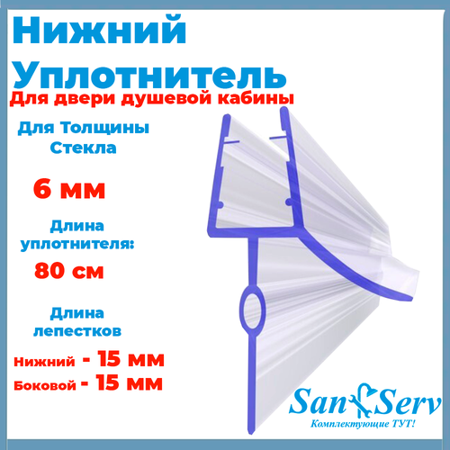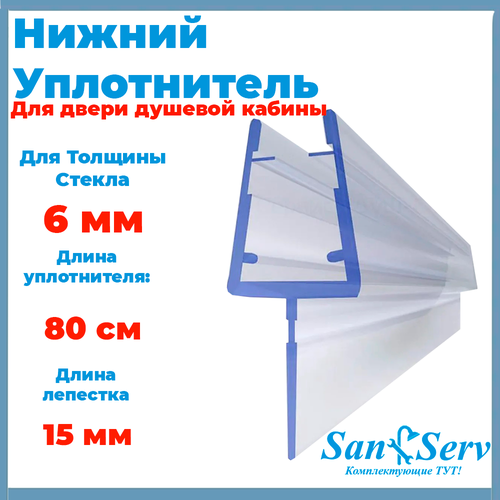 Нижний уплотнитель для стекла двери душевой кабины длиной 80 см для стекла толщиной 6 мм. U-5101-6-80