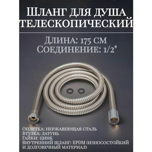 Шланг для душа 150см, 1/2(Имп)-1/2(Имп), ПВХ, латунь, серебристо-белый, SonWelle