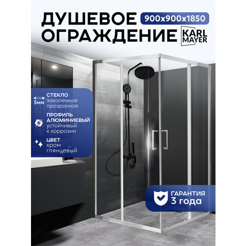Душевое ограждение KARL MAYER CV-900-C-C 900*900*1850 Г-обр. стекло Прозр 5мм, профиль Хром