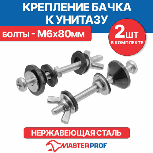 Крепление бачка к унитазу М6 с гайкой "барашек" (Premium, нержавеющая сталь АISI 304, комплект 2 шт.)
