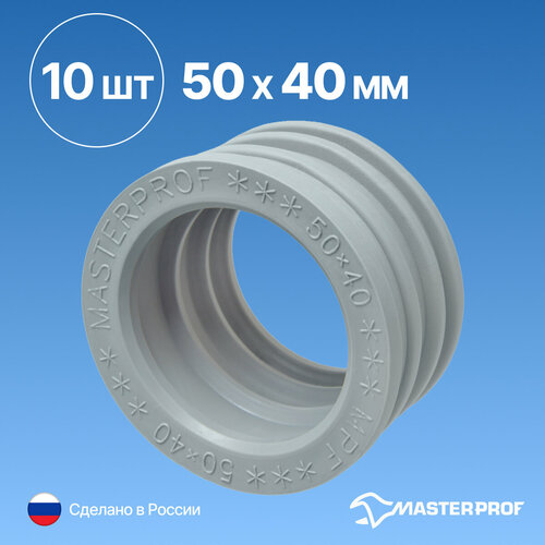 Манжета для канализации удлиненная 50 х 40 мм, серая, уплотнительная сантехническая, 10 шт.