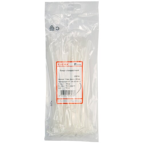 Хомут(стяжка) строительный, кабельный полиамид 3,6х200 мм стандартный 6.6 (-40С+85С), (упак.100шт.) ДКС