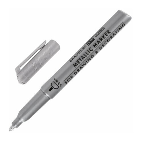 Маркер для декорирования и рисования серебристый BRAUBERG ART METALLIC линия письма 1-3 мм, 12 шт