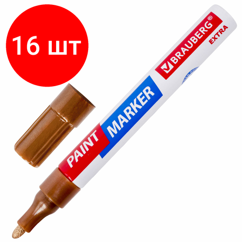 Комплект 16 шт, Маркер-краска лаковый EXTRA (paint marker) 4 мм, медный улучшенная нитро-основа, BRAUBERG, 151988