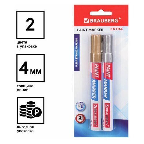 Маркер-краска лаковый EXTRA (paint marker) 4 мм набор 2 цвета золотой/серебряный усиленная нитро-основа BRAUBERG, 2 шт