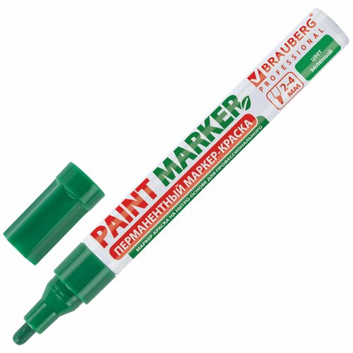 Маркер-краска лаковый (paint marker) 4 мм, зеленый, без ксилола (без запаха), алюминий, BRAUBERG PROFESSIONAL, 150879, (12 шт.)