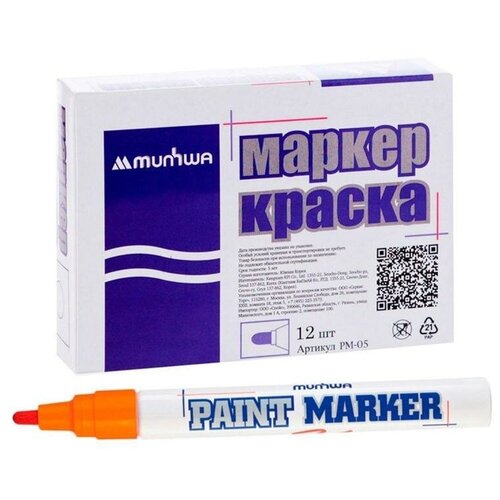 Маркер-краска MunHwa (4мм, оранжевый, нитро-основа) алюминий/пластик, 1шт. (PM-11)