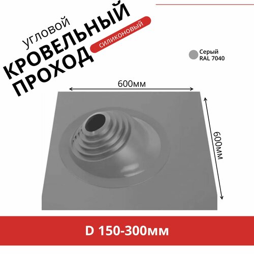 Мастер-флеш для дымохода (150-300мм). Кровельная проходка угловая для дымоходов. Силикон. Серый