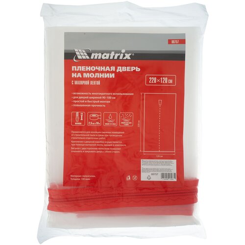 Пленочная дверь на молнии типа I, 220 x 120 cm, с малярной лентой 2.5 см х 10 м Matrix