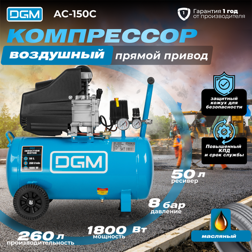 Компрессор воздушный масляный DGM AC-150C (260 л/мин, 8 атм, коаксиальный, ресив. 50 л, 230 В, 1.8 кВт) (DG2720-1)
