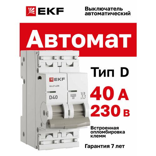 Автоматический выключатель EKF PROxima ВА 47-63N 2P 40А (D) 4,5 кА