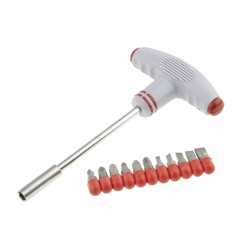 Отвертка с Т-образной эргономичной ручкой и набором бит, 11 шт, CrV MATRIX