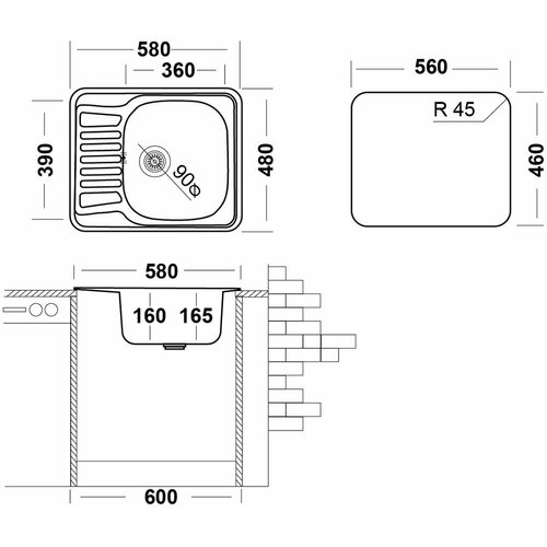 Мойка врезная GERMAN 58X48 0,6 (0,6) ВЫП. 3 1/2