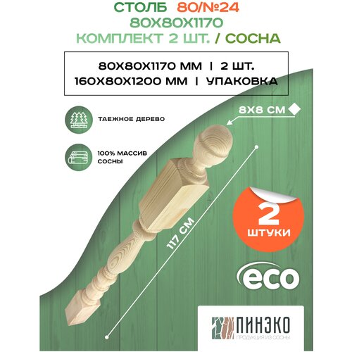 Столб начальный для лестниц / Комплект из 2-х опорных столбов 80x80x1170 мм деревянные из массива сосны премиум АА модель 80AN24