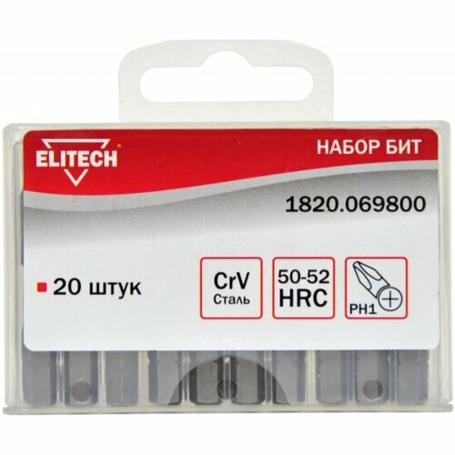 Набор бит ELITECH 25мм 20 штук пластиковый бокс