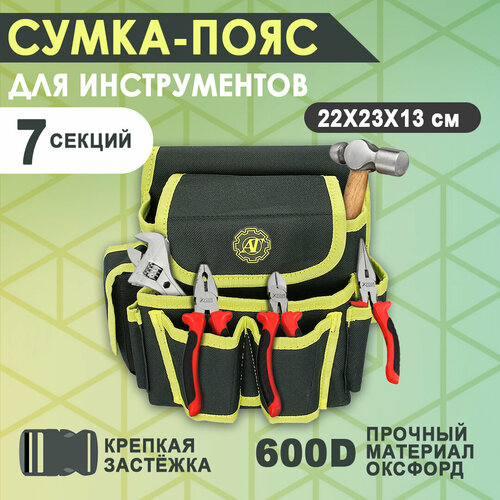 Сумка для инструментов 7 отделений 22х23х13 см / Сумка строительная на пояс / Пояс для инструментов
