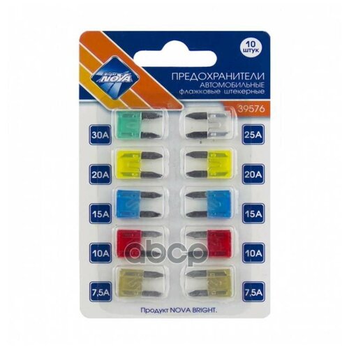 Предохранители флажковые Nova Bright, 7,5-30 А, набор 10 шт