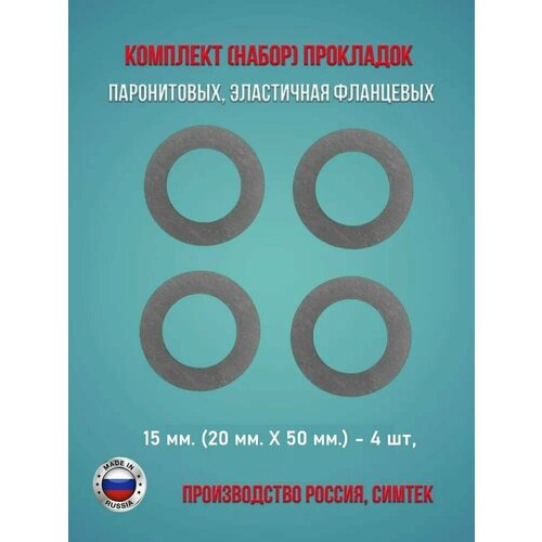 Комплект (набор) паронитовых, эластичная фланцевых прокладок в соответствии с ГОСТ 15180-86 диаметр 15 мм. (20 х 50 мм.), 4 штуки