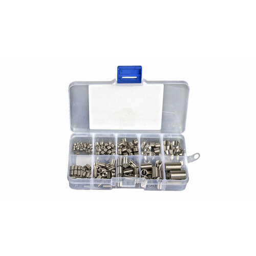 В набор входят 10 пружинных резьбовых вставок из высокоуглеродистой стали, которые обеспечивают прочность и долговечность.