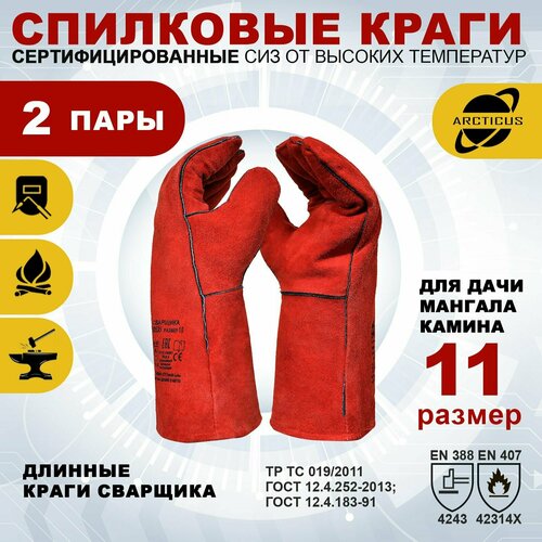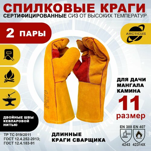 2 пары перчаток Arcticus 200535, краги сварщика, от повышенных температур, с подкладкой, размер 11