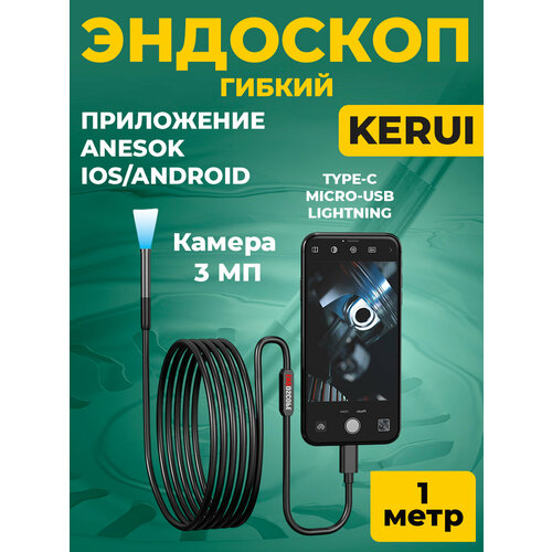 Эндоскоп для телефона KERUI, WI-FI, IOS, Android, type-c, microUSB, lightning, 1 метр