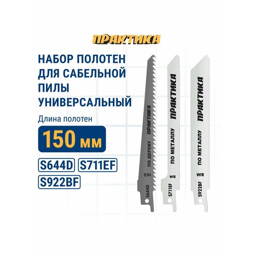 Набор пилок для сабельных пил ПРАКТИКА универсальный: S711EF/S922BF/S644D - 150мм, (3 шт)