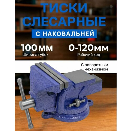Тиски слесарные с наковальней, поворотные, ширина губок 100 мм