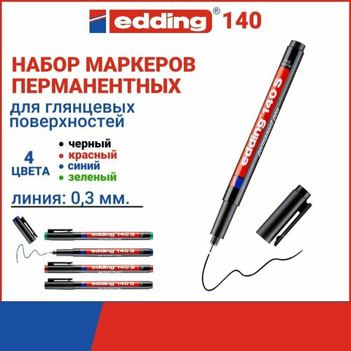 Набор маркеров Edding, E-140 S/4, для глянцевых поверхностей и пленок, 0.3 мм, 4 цвета
