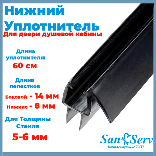 черныйПредназначен для уплотнения и дополнительной герметизации душевого ограждения из стекла. Легко устанавливается. Для этого необходимо с усилием надавить на уплотнитель рукой. Не требует применения клеящих составов. Держится за счёт своей упругости и жесткости каркаса из ПВХ. Длительное время не изменяет цвет.толщина стекла: 6 ммдлина лепестка нижнего 8 ммматериал: ПВ