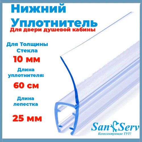 Нижний уплотнитель для стекла двери душевой кабины U-51021-6, длина 80 см, нижняя ресничка 25 мм.