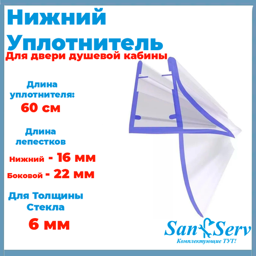 Нижний уплотнитель для стекла душевой кабины, U-5105-6, длинной 60 см