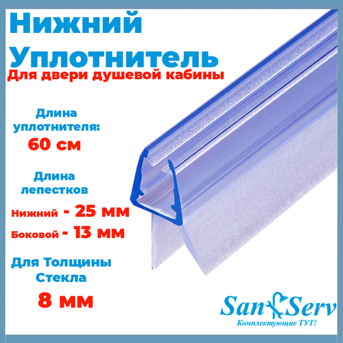 Нижний уплотнитель для стекла душевой кабины, U-5106-8, длинной 60 см