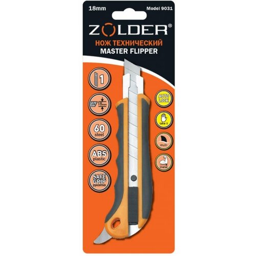 Нож ZOLDER Master Flipper с сегментированным лезвием, 18 мм, неострый доп. выступ 9031