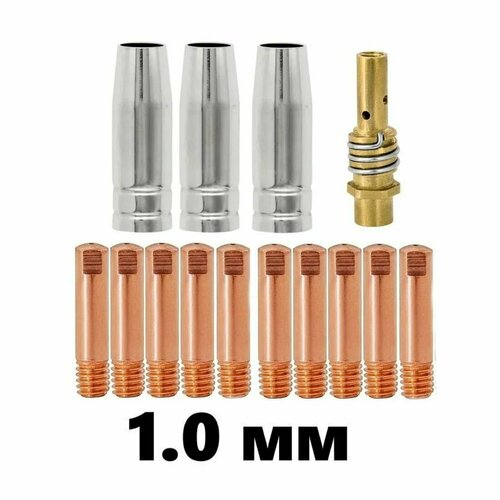 Набор для сварочной горелки MIG 15 (комплект для сварки: сопло 3 шт. , токосъемник 1 мм - 10 шт , вставка диффузор с пружиной 1 шт.)