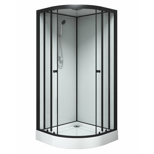 Душевая кабина Loranto NEO 90x90x(190+15) с низким поддоном 15см, прозрачное закаленное стекло 5 мм, задниt стеклянные стенки белые, профиль черный-матовый (CS-22109)