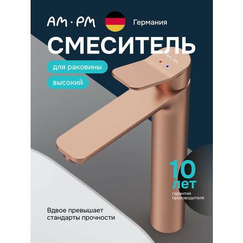 Смеситель для накладной раковины в ванную AM.PM Brava кран высокий, латунь, розовое золото