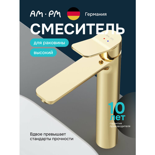 Смеситель для накладной раковины в ванную AM.PM Brava высокий, латунь, золото