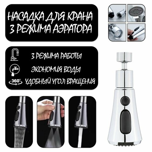 Насадка на кран с поворотным аэратором , 3 режима работы, экономия воды, хром
